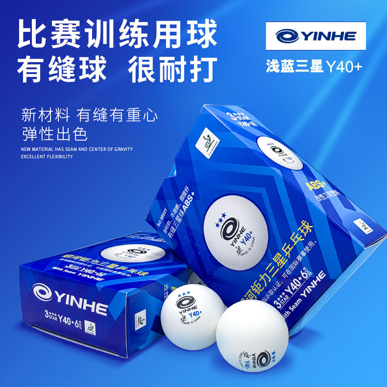 銀河藍鉅力新材料有縫40+三星乒乓球,獲得國際乒聯認證,可在國際賽事使用。有縫乒乓球,耐打好用,新材料,不易燃,彈性好!