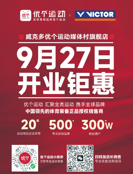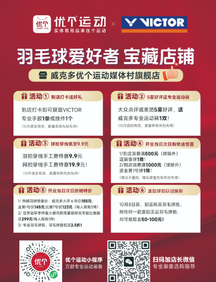 金秋送爽,喜訊傳來!優個運動旗下第7家線下直營店——威克多優個運動媒體村旗艦店,將于2025年9月27日(本周六)開業!